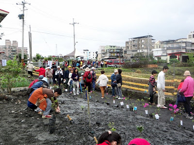 健行完畢,就是阿梓最期待的種樹活動囉!阿梓還自己帶了挖土工具,不過人家主辦單位現場就有準備工具啦,還讓媽媽一路拿著阿梓的鏟子健行,真是大呆瓜!